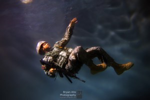 It was challenging finding a uniformed person wiling to step out of their comfort zone and take a plunge in the pool with all their gear. Enter ‘The Sarge‘, a friend. After explaining my challenges with planning my under water series theme, he immediately volunteered without hesitation. The Sarge is a Sergeant with the US Army as you probably figured out by now. He was willing to take his full complement or gear into the unknown – a swimming pool in an unsuspecting suburban Sacramento neighborhood – LOL. He figured his gear is expected to be in some of the most hostile environments and a pool was the least of his concerns.